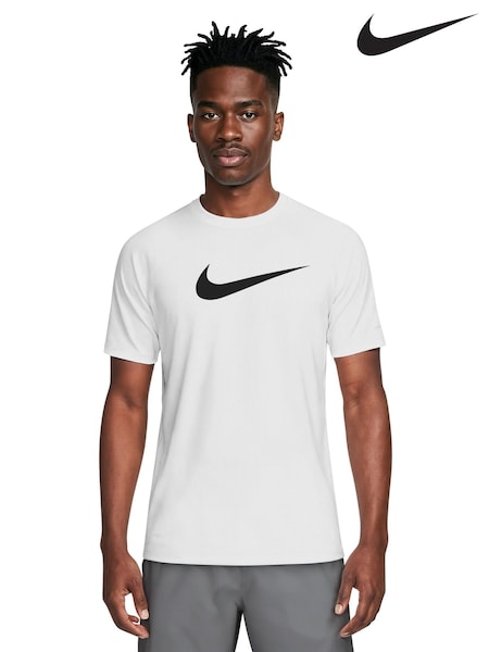 Nike White Graphic Logo Short Sleeve Rash Vest