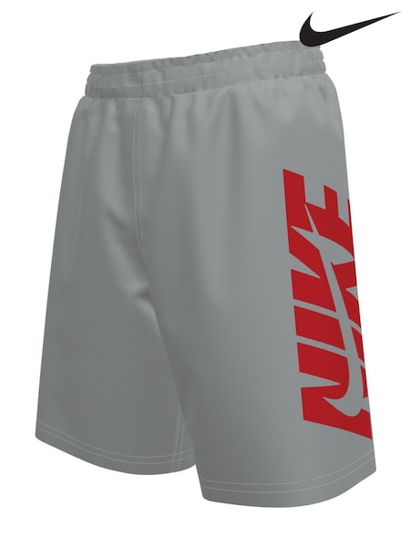 Nike Grey Graphic Logo Swoosh 7 Inch Swim Shorts