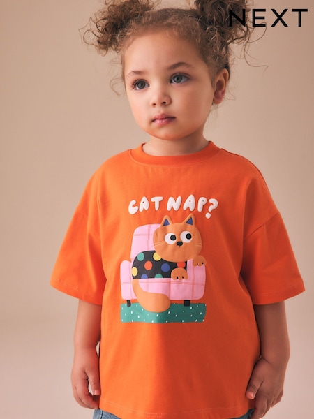 Orange Cat Short Sleeve T-Shirt (3mths-7yrs)