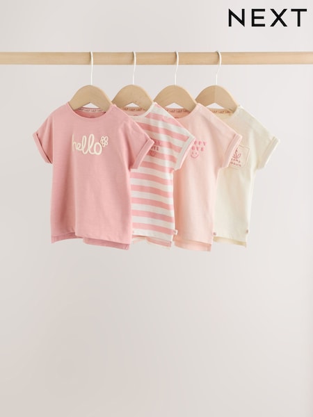 Pink Slogan Baby Short Sleeve T-Shirts 4 Pack (0mths-2yrs)