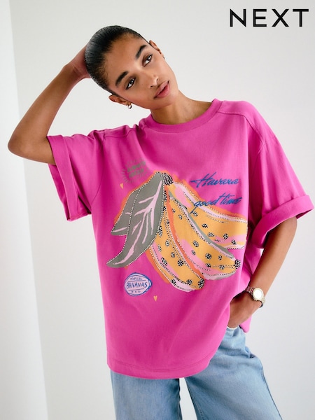 Pink Cotton Modal Slouch V-Neck T-Shirt
