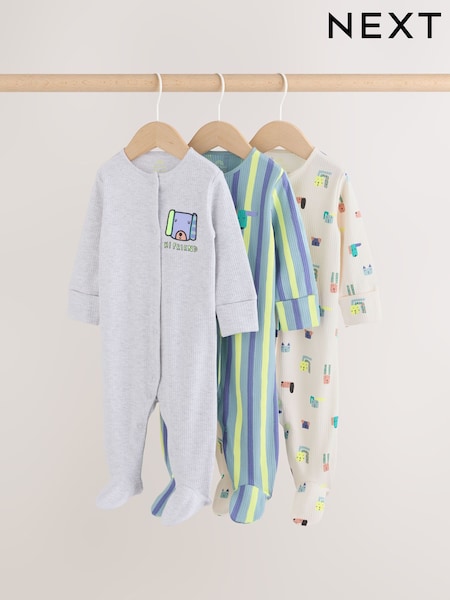 Blue Dog Two Way Zip Baby Sleepsuits 3 Pack (0mths-2yrs)