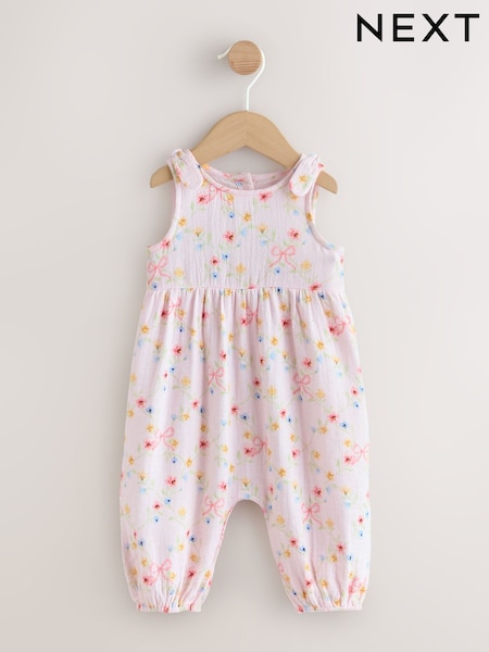 Pink Floral Baby Long Leg Muslin Romper (0mths-3yrs)