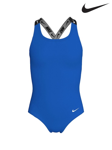 Nike Blue Logo Tape Crossback One Piece Swimsuit