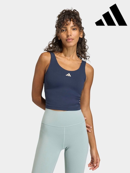 adidas Blue 3-Stripe Studio All Me Low Support Sports Vest