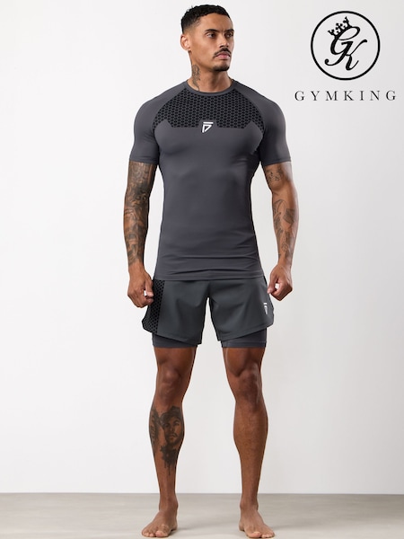 Gym King Grey Fight Division Combat Short Sleeve Rash Guard T-Shirt