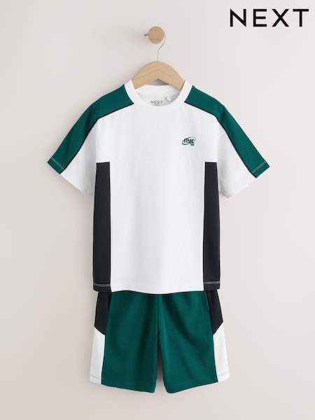 Green/White/Navy Colourblock Short Sleeve T-Shirt and Shorts Set (3-16yrs)