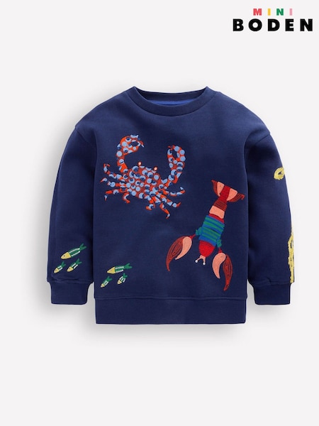 Boden Blue Heart Bobbie Appliqué Sweatshirt