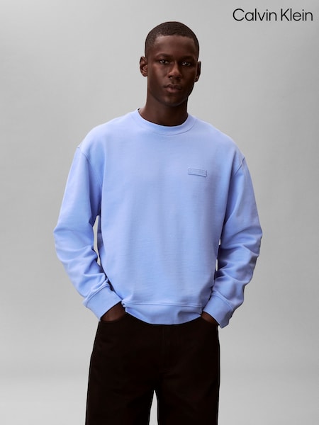 Calvin Klein Blue Cotton Terry Badge Sweatshirt