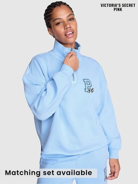 Victoria's Secret Pink Blue Dancer Half Zip Fleece Sweatshirt