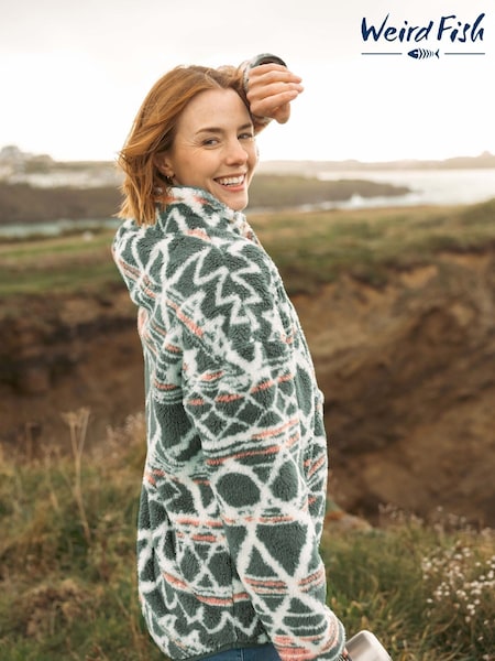 Weird Fish Green Madeleine 1/4 Zip Printed Plush Fleece