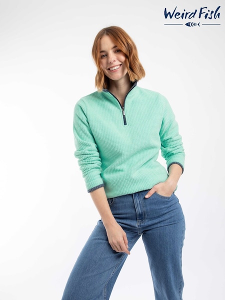 Weird Fish Green Beye Quarter Zip Grid Fleece