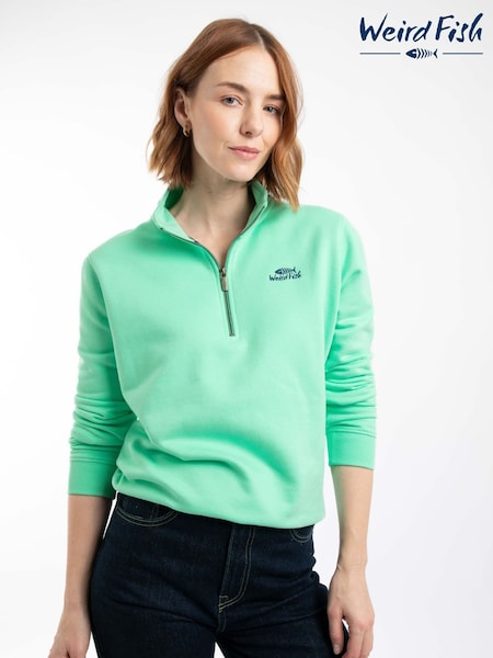 Weird Fish Green Avery 1/4 Zip Sweat Top