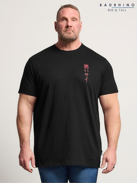 BadRhino Big & Tall Black Long Longline Front & Back Japanese T-Shirt