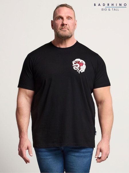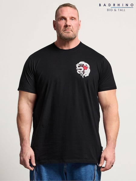 BadRhino Big & Tall Black Longline Japanese Tiger T-Shirt
