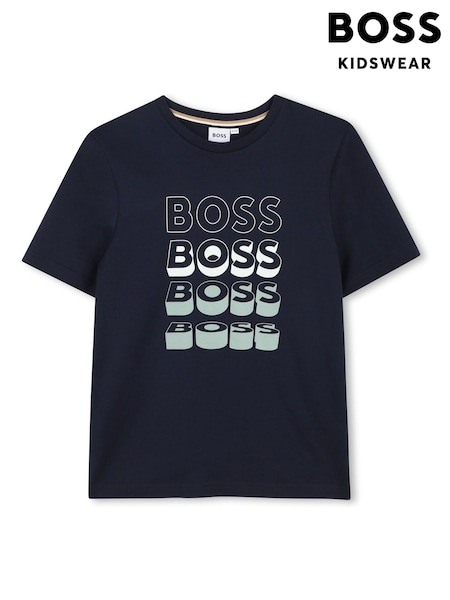 BOSS Blue Graphic Logo Crew Neck Short Sleeve T-Shirt