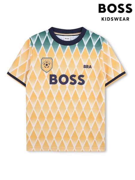 BOSS Yellow World Cup Logo Short Sleeve Crew Neck T-Shirt