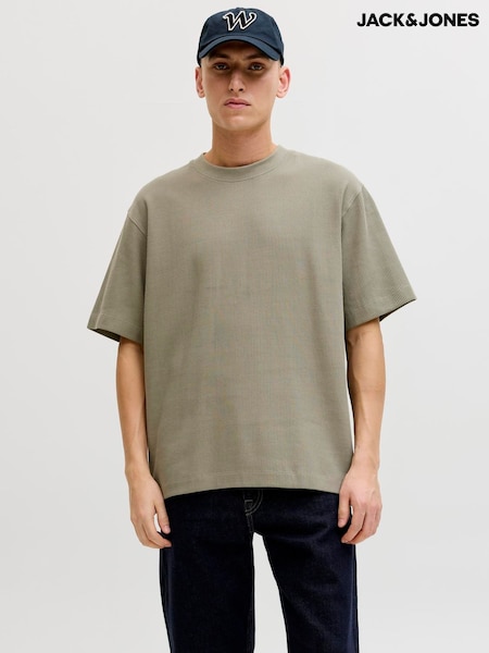 JACK & JONES Grey Ribbed Structure Short Sleeve T-Shirt