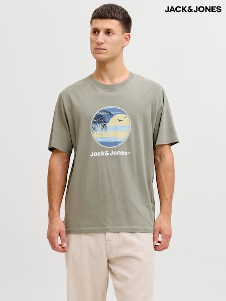 JACK & JONES Grey Short Sleeve Front Print T-Shirt