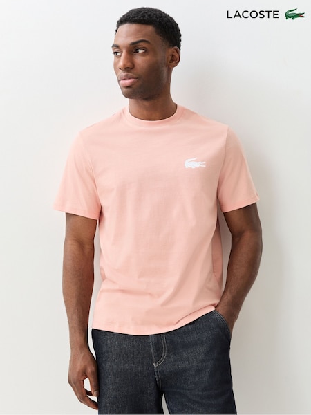 Lacoste Pink Crocodile Print Cotton Loungewear T-Shirt