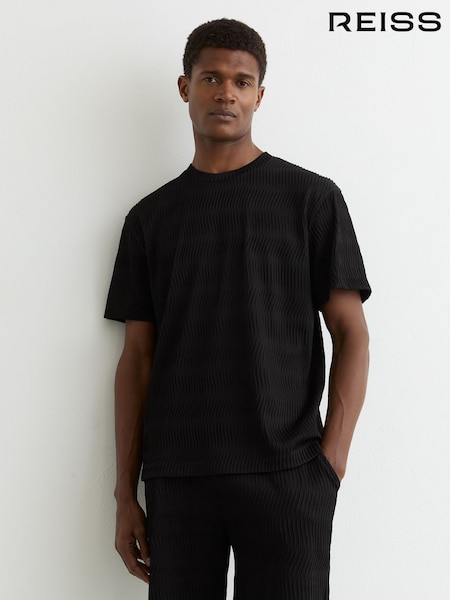 Reiss Black Cox Textured-Wave Relaxed-Fit T-Shirt