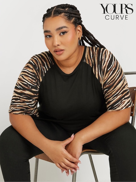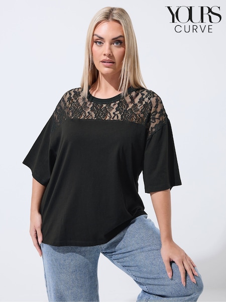 Yours Curve Black Limited T-Shirt With Shell Buttons