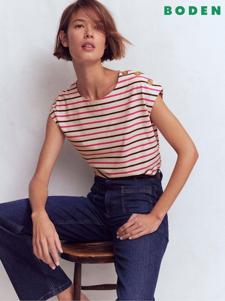 Boden Pink Short Sleeve V-Neck 100% Cotton T-Shirt