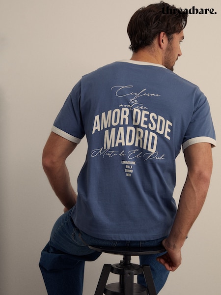 Threadbare Blue Graphic Cotton Ringer T-Shirt