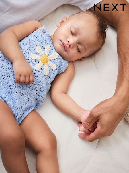 Blue Daisy Knitted Baby Romper (0mths-2yrs)