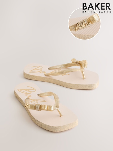 Baker by Ted Baker Gold Charm Square Toe Flip Flops