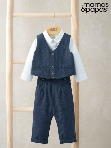 Blue Waistcoat, Shirt, Trousers & Bowtie Set (3mths-9yrs)